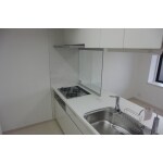 コンロ周りのキッチンパネルと油はねガードはアクリルの造作、レ…