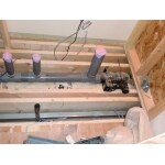 浴室と脱衣洗面所を二階のセンター部分に作りましょう。 そこにトイレも組み込みますね。 洗面場は収納用の棚を作り、使い勝手を良くします。 また一から施工なので、配線工事もしますからテレビも大丈夫です。