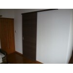トイレの位置を移動させ、入口を引戸に変更しました。 引戸は建物の柱と干渉してしまう為、アウトセットとしました。 シャワールーム用の脱衣スペースとトイレを共用とすることで、トイレを広いスペースとすることが出来、トイレ使用時のサポートをするスペースの確保をしました。