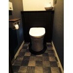 収納キャビネット一体型トイレで、トイレ内をすっきりさせ、清潔感をだしました。また、リラックスできるスペースにしたいとのご要望には、照明をダウンライトに交換と、壁紙、床材にこだわり、お悦びいただけました。