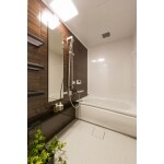 ホワイト一色のユニットバスをブラウンのアクセントのあるシステムバスへ改修しました。アクセント壁でメリハリのある空間となり、広く感じられるようになりました。