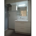 ・中古住宅を購入したので、洗面化粧台を最新式のタイプに交換したい。・洗面器の部分が広く、使いやすいタイプがいい。・家族が多いので、タオルや洗剤のストックなどを沢山入れられる収納を付けたい。・お掃除しやすいタイプにしたい。・鏡の裏の収納だけだとスペースが足りないと思うので、小物を置けるスペースが欲しい。