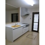 間仕切りを取っ払い対面式のキッチンに。 ライティングレールでお好みに合わせて照明を設置できます。
