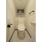 トイレは最新の設備に入れ替え、一部に柄の壁紙をお選びいただき、アクセントにしました。
