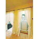 隣接するお部屋との間仕切りも、それぞれのお部屋の雰囲気を損なわないよう、ご提案させていただきました。 南欧風のダイニングの間仕切りは、カーテンを用いて統一感を演出しました。