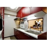 キッチンは最新の設備をご提案させていただき、その中から赤のシステムキッチンをお選びいただきました。 は面材にもこだわり、サッと拭くだけきれいになり、メンテナンスも簡単になりました。