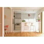 独立キッチンからオープンキッチンにリフォームを希望されるお客様は多いのですが、反面、普段のキッチンの様子が見えすぎてしまうのが気になる方も多いです。 今回は高めのカウンターをデザインして、開放的な空間と全てが見えすぎないようにする、ということの両立を実現しました。 カウンターは朝食もゆったりとれる広さがあり、キッチン側にはオーブンなどの家電やゴミ箱などを収めるスペースを設けて美しいキッチンを保ちながら使い勝手のいい空間を目指しました。