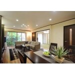 耐震面に不安をお持ちだったので、ダイニングは既存の4本の柱を残してデザインで活かすことを提案しました。 柱の1つは対面キッチンとダイニングとの間の壁に取り込み、空間を有効活用しています。
