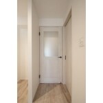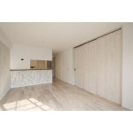 もともとの間取りでは、和室がリビング側に30cm程突き出ており、入ってきた際の印象も圧迫感を感じてしまうレイアウトになっていました。突き出てしまっていた部分をそろえ、3枚の連動引き戸で仕切ることで、LDと一体的に利用できる可変性のある洋室に変更しました。建具とフローリングは古木を連想させるデザインを採用しています。