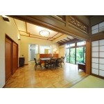 南側にある二間続きの和室がほとんど活用されていなかったので、一間はリビングとして活用できるよう残しました。右手上部に見える広縁の垂木や美しい透かし彫りの欄間はそのまま生かし、既存木部の色合いに合わせて、天井にはアクセントモールと木枠の照明器具を取り付け、床はパーケットフロアにするなど、古い洋館のようなイメージでインテリアデザインをご提案しました。美しい和風庭園を眺めながら過ごせる空間に仕上げることが出来ました。