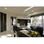 クールモダンな空間になるよう、お部屋はホワイトとブラックで統一しました。 必要な場所に必要な量の収納を確保するため、壁面収納を造作して実際住まい始めてからもそのイメージが維持しやすいようにご提案させていただきました。