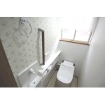 ・タンクレス便器へ交換したので、手洗いも新規設置しました。 手洗いはリフォーム用のため、新しい給排水管工事は不要です! ・お掃除がラクな「泡で洗うパナソニックの新型アラウーノ」を今回はオススメさせて頂きました。使用ごとに泡で便器を洗うので日々のお掃除がラクに。 ・手洗いもコンパクトながらカウンターが手すり兼用となっているため、将来に備えることも出来ます。 ・壁紙、床の貼り替えでは、アクセントクロスを明るい色柄を選択して、清潔感ある明るいトイレを目指しました。