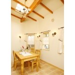 リビングは天窓の光が柔らかく反射する癒しの空間とする為、無垢材、珪藻土、テラコッタ、アイアンなどの自然素材を使用するご提案をさせていただきました。 天空をイメージするRの天井やステンドグラスなど、南欧風のイメージになるように、制限のある空間を最大限に生かした空間に仕上げることが出来ました。
