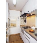 リビング同様断熱効果があり、素足でも暖かい桐無垢材を敷きつめたキッチン。 冬の底冷えに長年悩まさることなく、広々としたキッチンでお料理を楽しんでいただけるようになりました。