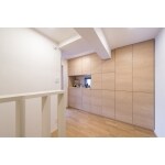 階段上に造作した収納家具はLIXILの面材で揃え、踊り場への明かりは既存窓から取り込みました。