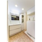 天井をすっきりにして、空間の広がりを持たせる。使いやすい洗面化粧台を提案