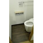 トイレ機器背面壁の可動棚は撤去させて頂き、全体がすっきりとした印象になりました。また床材も濃いめお色みを選ばれ、空間が引き締まりました。
