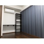個室2室には色違いのストライプクロスを施工しました。 それぞれクローゼット・カウンター机・本棚を完備しています。