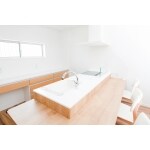 L型キッチンテーブルで限られた空間を広く使用できるようになります。