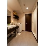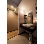 なるべく物を置かないように、床はすっきりと、洗面台の上にもオープン棚を設置。 住まい全体の雰囲気をプライベートまできっちりと仕上げました。