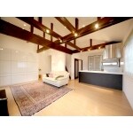 3つに分かれていた部屋(洋室2部屋+納戸)の壁を取り払い、LDK化しました。天井を全て取り払い、ダークブラウンの梁を見せる事で、開放的でダイナミックな印象に仕上がっております。