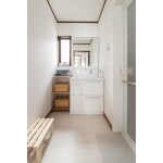 床、壁紙、洗面台、すべて新しいものでご提案させていただきました。洗面所のクッションフロアは明るい色合いで、狭い空間でも広く感じられる効果が有ると思います。清潔感がある明るい洗面所になりました。
