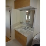 ボウルが広く、混合栓でお湯の調整も楽になりました。三面鏡を使用して収納も大幅UP