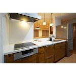 対面式の木製キッチンを採用しました。 IHなのでお手入れも楽ですね。