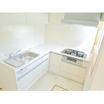 キッチンは以前と同じL字型ですが、棚をとりつけることで収納力抜群です。