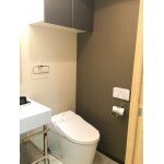 タンクレスへ変える事でサイズが小さくなり、脱衣所の空間をより広く感じられるようになりました。横壁のアクセントクロス追加と、吊り戸扉のカラーチェンジも行いました。