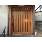 (旧京都建物株式会社(京都建物工務店リフォーム)での事例です。)リクシル社製のリシェントで壁を壊さずに1日でのリフォームをご提案。デザインや色味もお客様にお選びいただき、新しい玄関ドアに生まれ変わりました。また断熱効果、採風効果もあるので冬は暖かく、夏は涼しく過ごして頂けます。