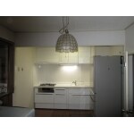 ・リビングとキッチンスペース間の垂れ壁を高くするため、現状の開口枠を一部再利用し塗装にて仕上げ一体化を計画しました。 ・キッチンパネルは、デザインが豊富なものでご提案しました。 ・旧給湯器スペースは、ゴミ箱を設置するだけのスペースでしたので、上部の利用をご提案しました。