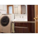 床 は タイル 貼り、壁 は 調 湿 性 の あ る 珪 藻 土 。画 一 的 だっ た洗 面 室 が 、上 質 な 空 間となりました 。