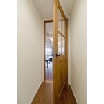 リビングの扉はパイン材の無垢の扉を現場で塗装しました。ガラスは流れる模様のついたアンティーク風。