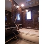 壁パネルを鏡面のブラウンに、シャワーをメタル調、水栓金具 までこだわりに抜いてのご提案でした。 浴室内TVももちろん設置いたしました。