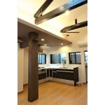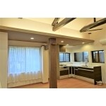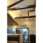 天井を取り払い、古い梁を見せた開放感のある空間に。 天窓も付けて明るいダイニングキッチンに。