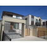 お洒落なタイルを貼ったシャッター。 木目でぬくもりのある門扉、フェンス。 カーポートと、サイクルポートも取付ました。