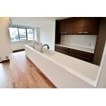 カウンターキッチンへ変更し、 フローリングととカウンターへ調和したキッチンへ 調理スペースもタイルにてより高級感と、 清潔感を保つ空間へ