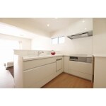 既存キッチン撤去、床下地から交換し、フローリング仕上げ、L型キッチン・カップボード設置。窓交換。