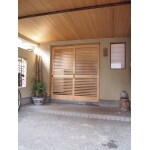 軒天には、杉の羽目板を張りました。 また、ご主人の愛車のバイクが通るようにスロープをつくりました。バイクがとてもかっこいいです。