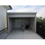 扉付きの物置ですと、スロープなどを設置する必要があるので、シャッター付きの物置をご提案して採用していただきました。後で棚板を設置することで小物の整理も万全です。施錠もしっかりできて安心ですと喜んでいただきました。