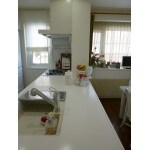 オープンキッチンにして、お茶やお菓子も演出の一つにしてはいかがかと、フラット対面型をご提案しました。 対面側も収納として利用できますので、おもてなしの道具を収納されると動線も短くすむので、喜んでいただきました。 コンロ前もエレガントなタイルをセレクトし、毎日眺めるところにも素敵な雰囲気を演出しています。