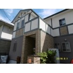 外壁の目地の箇所には、シーリングのヒビもありましたので、一度すべてのシーリングは取り、シーリングの工事をやり、塗装前の外壁は紫外線や雨風等による経年の塗膜劣化があり、手で触ると、外壁の粉がつくようなチョーキング現象がありました。高圧洗浄で樹脂粉を除去、清掃いたしました。