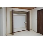 和室から洋室へリフォーム。 押入れだった部分は大容量のクローゼットに変更。床は白系のフローリングで明るい印象です。