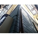 凍害は浴室等の水を扱う部屋にあるサッシ周りで発生しやすいのが特徴(内部結露が発生しやすくサイディングが塗膜非保護面である裏面から吸水してしまう)です。これはサイディングが直張り工法で施工されている事が原因であると考えられます。 脆弱化した外壁部分の、弱った層は出来るだけ除去し、浸透強化シーラーを十分に吸わせ(最低3~4回)て素材を固めてから通常の下塗り上塗りを行います。