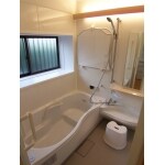 タイル張りの浴室から、手すり、シャンプー台、フタ掛けのある最新のユニットバスになりました。