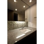 洗面化粧台のミラーの下に透明感のあるガラスモザイクタイルを張りたいと思っていました。