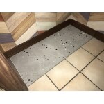 それでは現在はカウンターキャビネットだけですが、床から天井までのトールキャビネットを設置しましょう。家族4人でも十分収納できます。 既存の玄関収納を撤去したところ、タイルが張っていなかったので、類似タイルで埋めることもできますが、せっかくなので家族の思い出を手形にしてここに残しませんか。