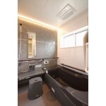 システムバス施主様支給。解体、土間打設、配管工事。古いタイル張りのお風呂から、あたたかいユニットバスへ。