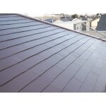 板金部分の錆と釘抜けが多数見られました。 全体的に下地木材が弱っている様子ですので、棟板金と下地の全交換は急務と思われました。 また、2階が暑いとのお悩みもあったので断熱性も考慮しガルバリウム鋼板屋根の横暖ルーフやガルテクトもご提案しましたが、ご予算の都合上、棟包み板金の交換を行い高反射型遮熱塗装で仕上げる事になりました。